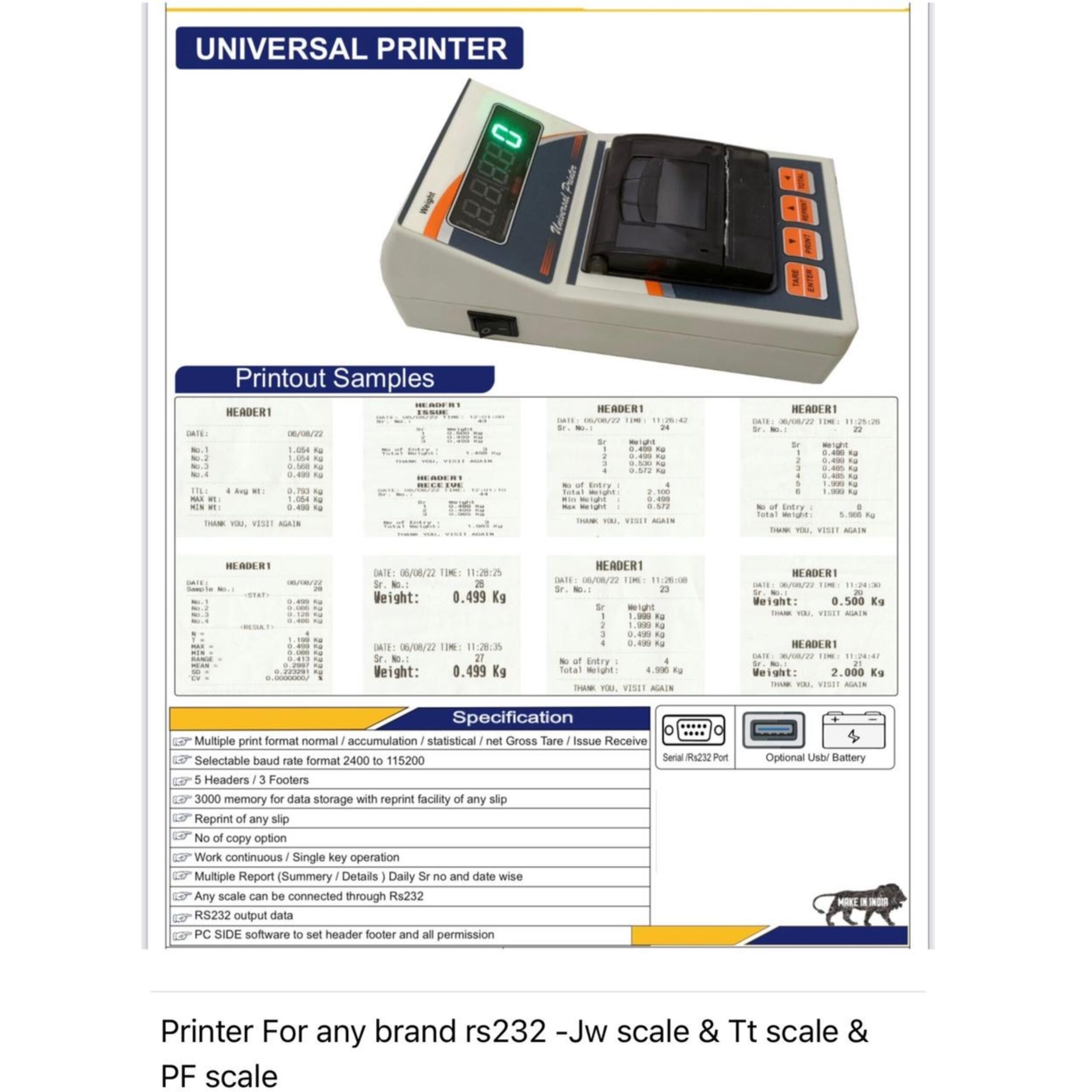 *Model: TI-DJ Series Digital Gold Balance with Universal Receipt Printer