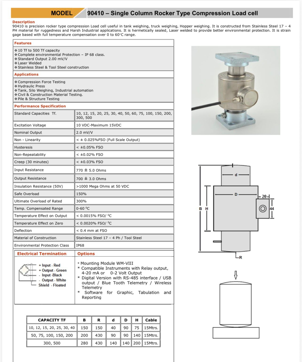 *Load Cell Single Column Rocker Type Compression Imported OR ADI make as per customers request